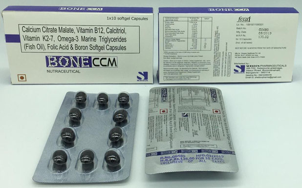 Our formulation is a special bone building formula of Calcium Citrate, Omega-3-marine triglycerides, Boron, Folic acid, Mecobalamin, Vitamin K2-7 and Calcitrol. This combination works synergistically and promotes bone health. The bone health declines because of low calcium levels which causes loss of bone diseases such as osteoporosis (abnormal loss of bone), osteopenia (loss of bone that is when body doesn't make new bones as quickly as it is absorbed), and post menopausal osteoporosis (it occurs after menopause - the estrogen level decreases and results in bone loss).