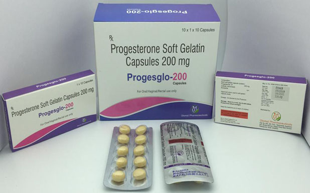 Progesterone soft gel capsules are an oral dosage form of micronized progesterone which is chemically identical to progesterone of ovarian origin. The oral bioavailability of progesterone is increased through micronization. Progesterone shares the pharmacological actions of the progestins. Progesterone binds to the progesterone and estrogen receptors. Target cells include the female reproductive tract, the mammary gland, the hypothalamus, and the pituitary. Once bound to the receptor, progestins like Progesterone will slow the frequency of release of gonadotropin releasing hormone (GnRH) from the hypothalamus and blunt the pre-ovulatory LH (luteinizing hormone) surge. In women who have adequate endogenous estrogen, progesterone transforms a proliferative endometrium into a secretory one. Progesterone is essential for the development of decidual tissue and is necessary to increase endometrial receptivity for implantation of an embryo. Once an embryo has been implanted, progesterone acts to maintain the pregnancy. Progesterone also stimulates the growth of mammary alveolar tissue and relaxes uterine smooth muscle. It has little estrogenic and androgenic activity.